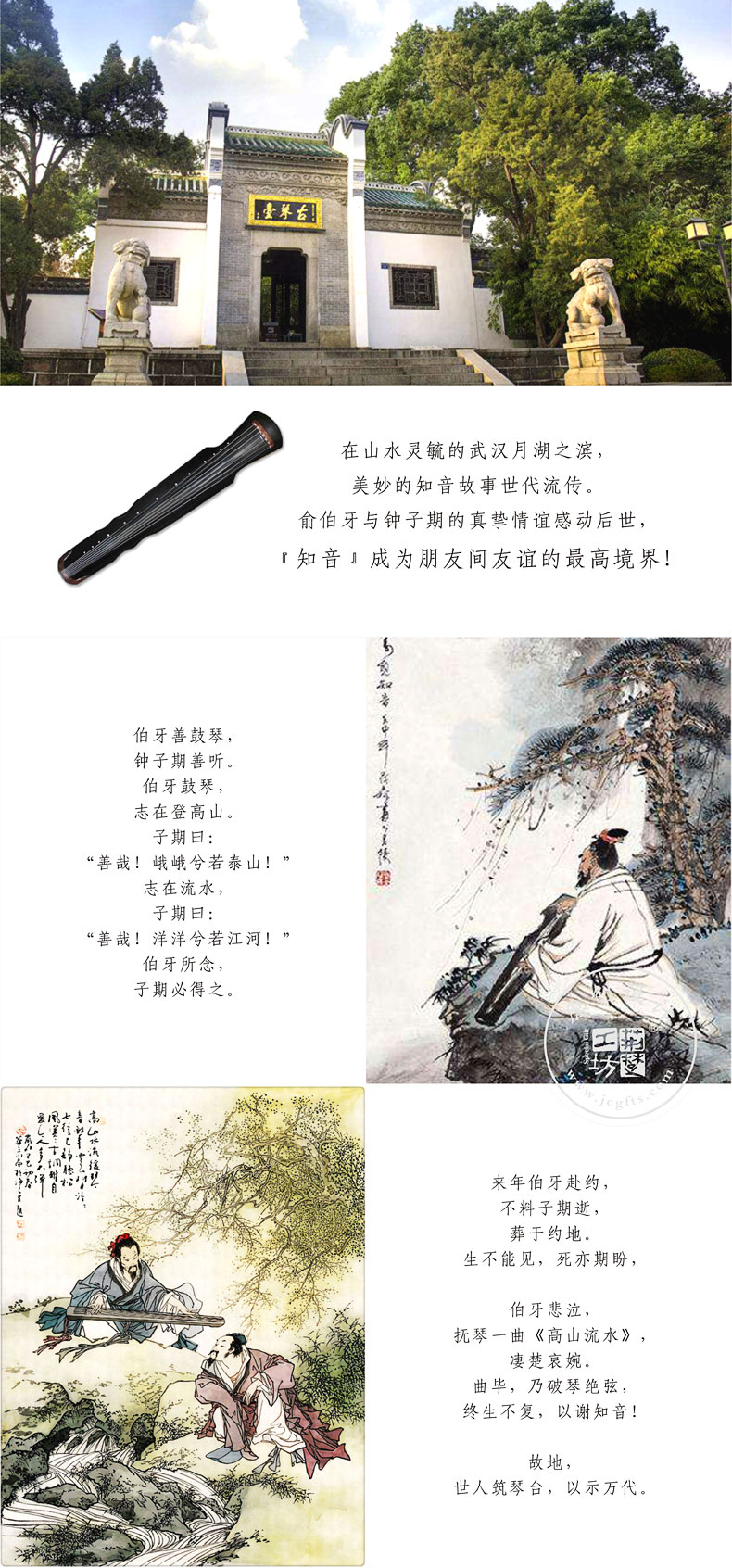 - 人生幸遇,感恩有你! 在山水灵毓的武汉月湖之滨,美妙的知音故事世代流传。俞伯牙与钟子期的真挚友情感动世人,『知音』成为朋友间友谊的最高境界和赞美!武汉特色礼品--琴台知音古琴音响,以『知音』赞誉您与朋友间的真挚情谊!