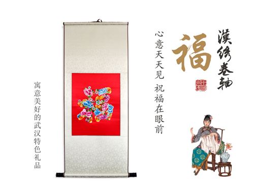 汉绣大卷轴画 牡丹花开汉绣大卷轴画 天下第一福