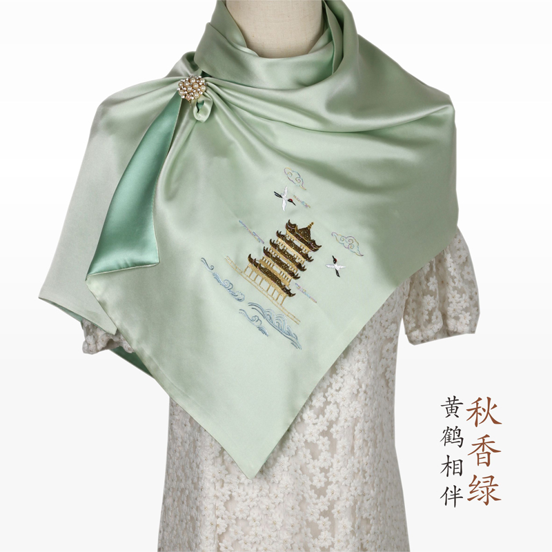 黄鹤相伴 手绘丝巾黄鹤楼锡器 祥龙献瑞